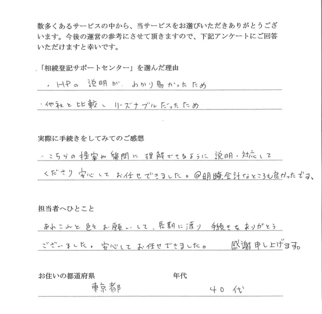 あれこれと色々お願いして、長期にわたり手続きをありがとうございました。安心してお任せできました。感謝申し上げます。