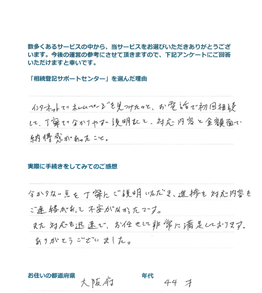 また対応も迅速で、お任せして非常に満足しております。ありがとうございました。