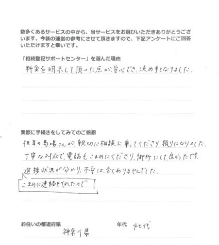 丁寧な対応で、電話もこまめにくださり、御所にして良かったです。