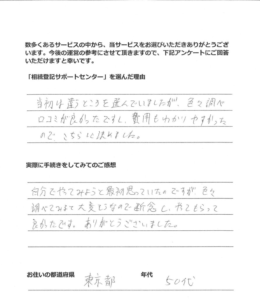 当初は違うところを選んでいましたが、色々調べ口コミが良かったですし、費用もわかりやすかったのでこちらに決めました。